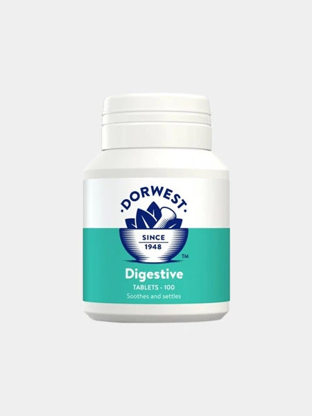 Le complément alimentaire naturel Digestion de Dorwest aident les chiens et les chats sujets aux problèmes digestifs ou qui souffrent de mal des transports. Dorwest Digestion contient des herbes calmantes comme le gingembre et la valériane, la rhubarbe et la menthe poivrée pour faciliter la digestion et l’orme rouge pour apaiser et réconforter. Ils soulageront les problèmes d’aérophagie, élimineront les flatulences et leurs effets secondaires nauséabonds. Ils permettent également d’éviter les vomissements liés aux problèmes de digestion. L’ajout d’une petite quantité de valériane dans la formulation de ce comprimé aide à calmer les sensations désagréables sur l’estomac que peuvent ressentir certains chiens ou chats lors des voyages.