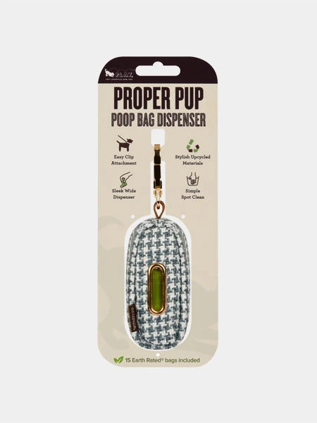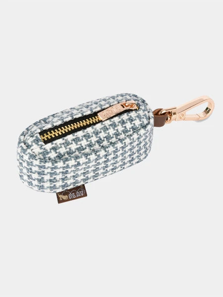 Distributeur Sacs à Crottes Pour Chien En Tissu – Tweed Bleu Et Blanc