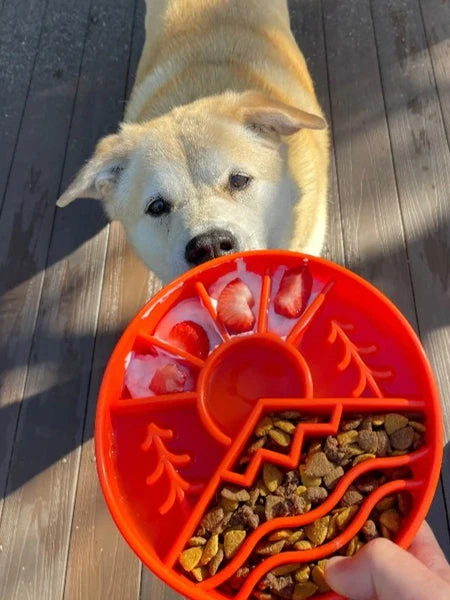 En été, la gamelle peut être placée au congélateur, c’est parfait pour rafraîchir votre chien quand il fait (trop) chaud. Les activités de léchage et de fouille soulagent le stress et apaise les chiens anxieux. Elles réduisent aussi les comportements destructeurs en occupant votre poilu.