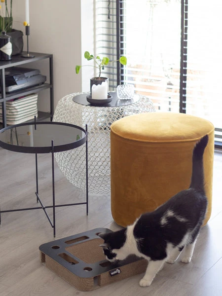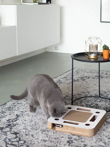 Le griffoir pour chat de district70 vous offre la parfaite aire de jeu pour votre chat. La surface en carton ondulé est entourée d’une piste avec deux balles avec des cloches facilement accessibles par les côtés. Le mouvement tourbillonnant des boules stimulera votre chat. La partie griffoir permettra à votre chat de garder des griffes en bonne santé. Interactif, il stimule l’activité mentale et physique. Grâce à ce jouet, votre maison devient le territoire de chasse de votre chat. Il permettra de l’occuper et de le stimuler pour lutter contre l’ennui, principale cause de dépression, d’anxiété, d’agressivité, de destructions, etc…