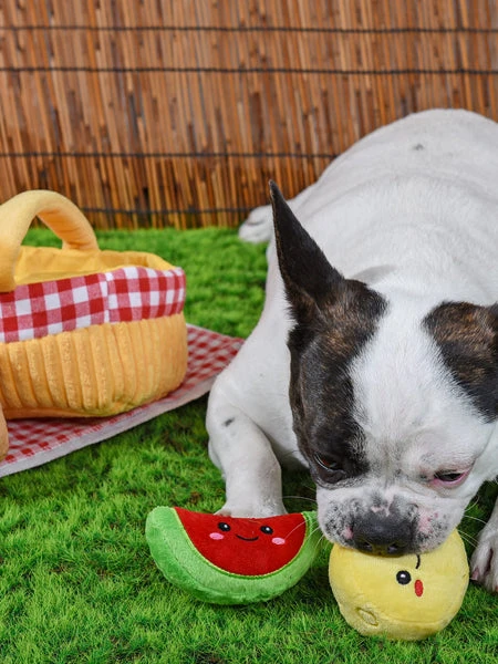 Le jouet interactif pour chien et chiot en forme de Panier à pique-nique de HugSmart est un jouet en peluche où se cache 3 peluches trop mignionnes qui couinent. Ce jouet est excellent pour la santé mentale de votre Poilu car il devra mobiliser toutes son attention pendant le jeu.