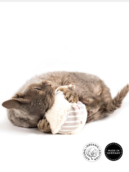 Le jouet en forme de Balle de Profeline est rembourré d’herbe à chat séchée (cataire/valériane). Ce jouet est conçu en Allemagne à partir de coton certifié GOTS. Avec ce jouet pour chat de qualité, votre chat va pouvoir le balader entre ses pattes de partout ! Jouet idéal pour s’amuser avec votre chat ou le laisser se défouler seul, grâce à la cataire. L’herbe à chat offre un puissant parfum envoûtant et stimule les sens de votre chat et réveille son instinct naturel.
