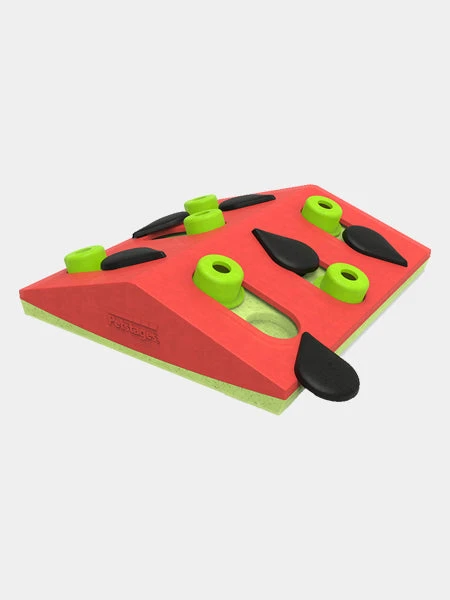 Le jouet interactif Melon Madness de Nina Ottosson est un jouet distributeur de friandises pour chat. Ce Jouet d’occupation stimule l’activité mentale et physique de votre chat. C’est un véritable jouet d’enrichissement pour chat. L’activité physique et mental de votre chat sera récompensée ce qui l’encouragera à se dépenser davantage. Ce jeu interactif pour chien aide à réduire le comportement destructeur et l’ennui tout en renforçant le lien entre vous et votre chat. Laissez votre chat sentir le plateau puis déplacez les pépins noirs pour lui faire voir les délicieuses récompenses. Après cette étape, laissez votre chat s’amusez et faire appel à sa curiosité afin de dénicher les friandises.