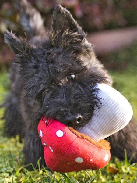 La peluche pour chien en forme de Champignon 🍄 de la collection Blooming Buddies de Pet Play couine légèrement pour stimuler votre chien pendant le jeu. Le papier sonore à l’intérieur stimulera votre chien pour des heures et des heures.
