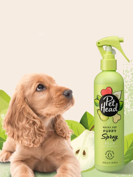 Le spray parfumant et hydratant pour chiot de Pet Head est spécifiquement formulé pour les peaux sensibles des chiots.