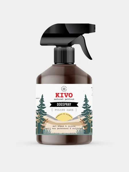 Le spray soins du pelage pour chien Polish Care de Kivo Pet Care offre un soin revitalisant pour le poil de votre chien. Il est idéal pour les pelages ternes. Sa formule douce laissera le pelage de votre chien plus brillant et soyeux. Ses principes actifs à base d’huile d’Argan et de Jojoba nourrissent le poil de votre chien et renforce les structures du pelage de votre chien.