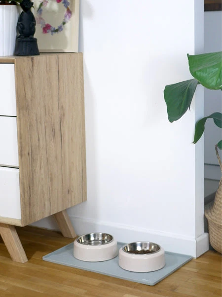 Gardez vos sols propres et en parfait état grâce au tapis de gamelle pour chien et chat de inooko. Le design épuré et élégant du tapis offre une protection imperméable. Votre poilu pourra se nourrir et boire en toute tranquillité et sans salir votre intérieur. Le tapis est assez grand pour accueillir 2 gamelles et les bords relevés empêchent l’eau ou la nourriture de s’échapper.
